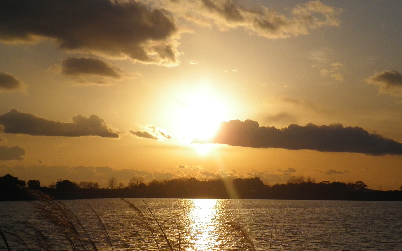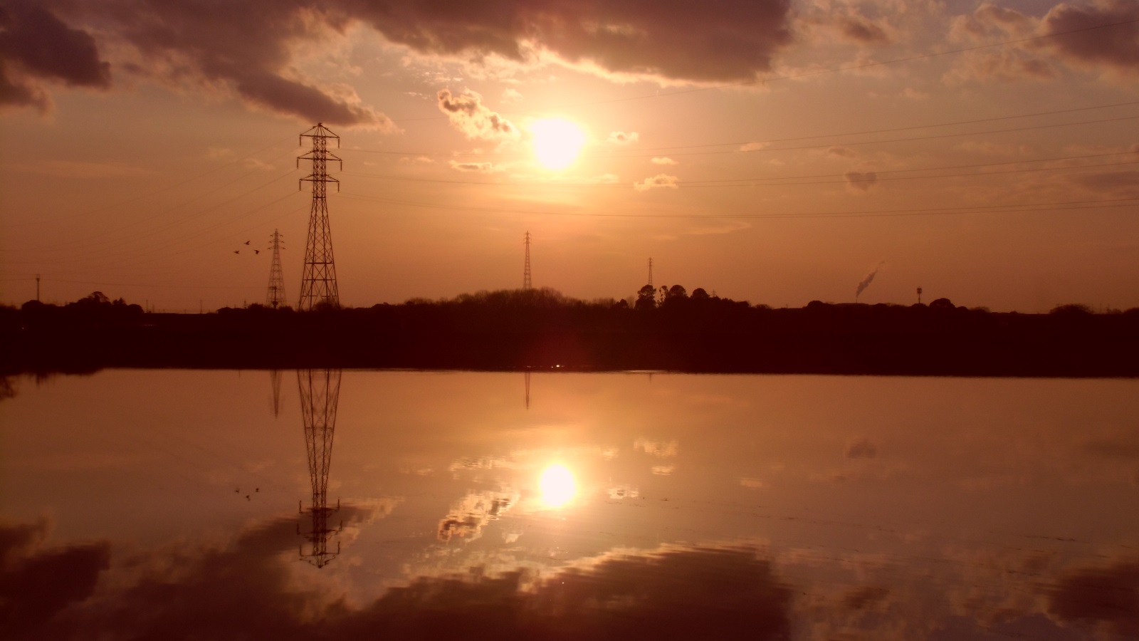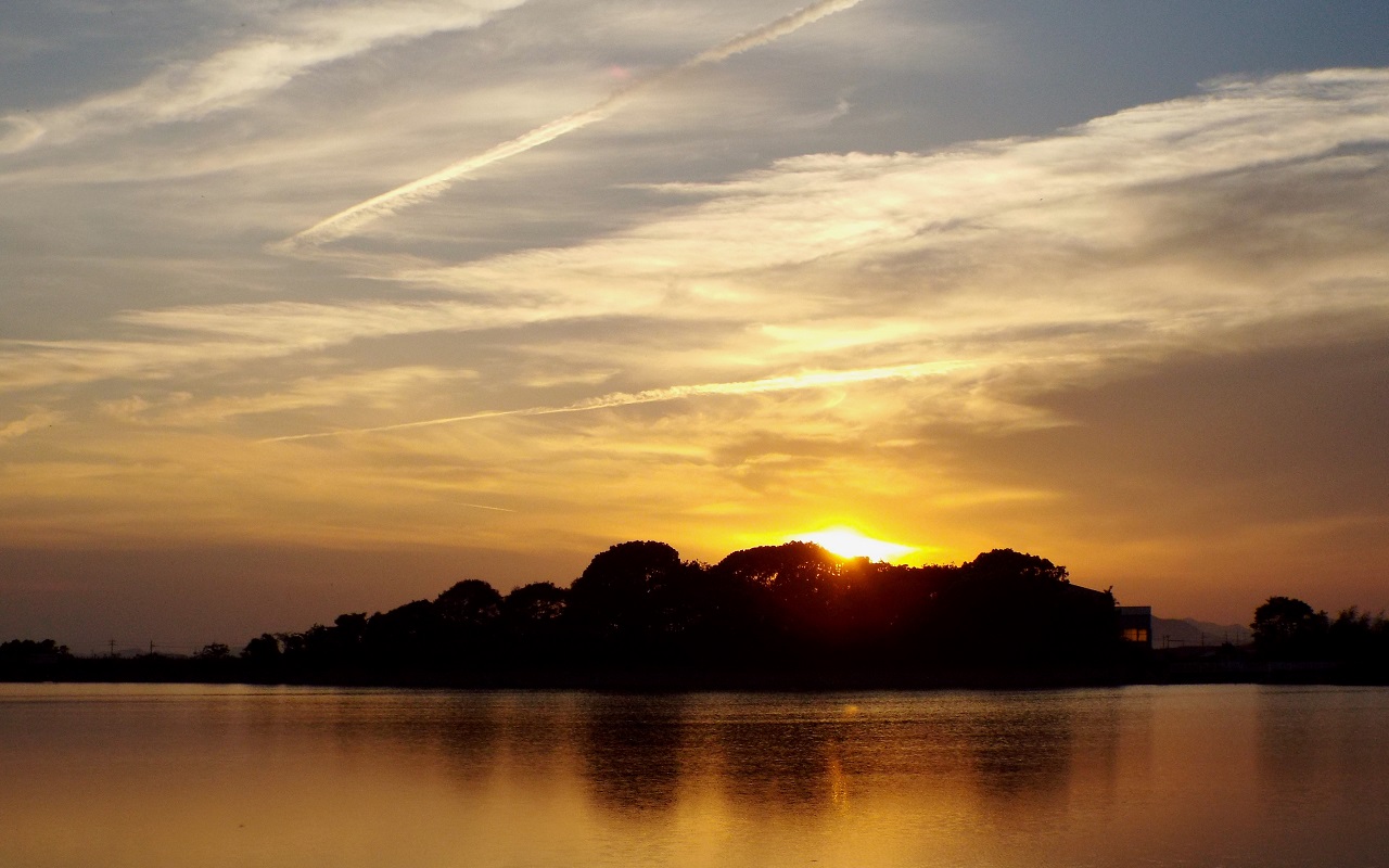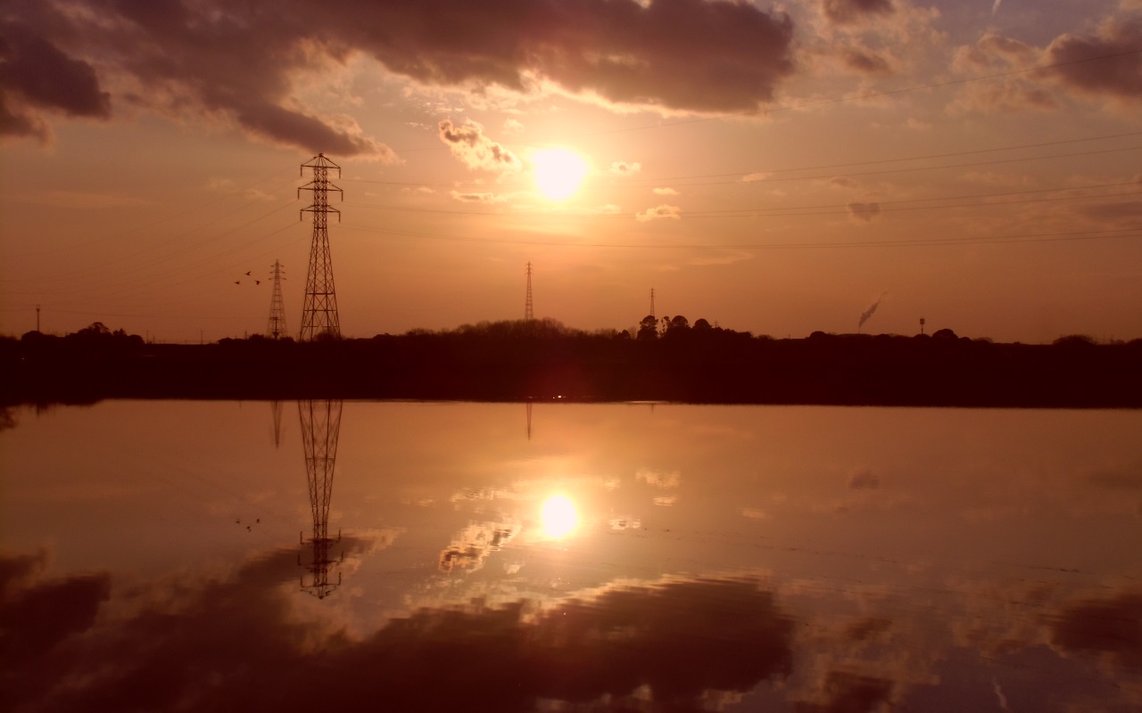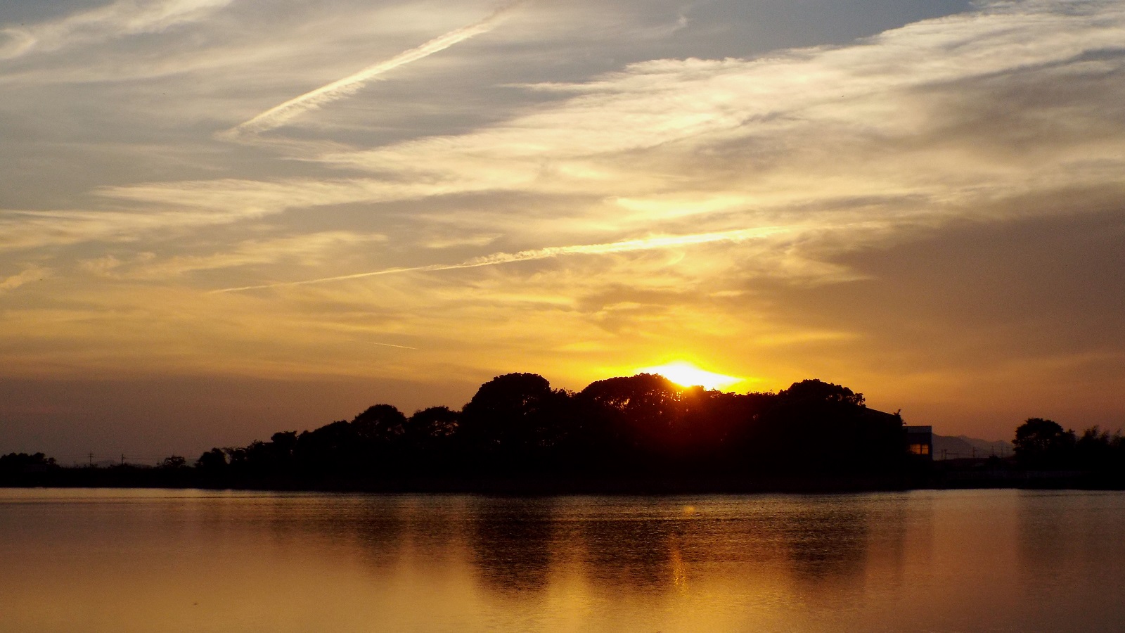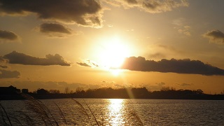 | 夕日と野鳥 | 夕日とカワウ | ||