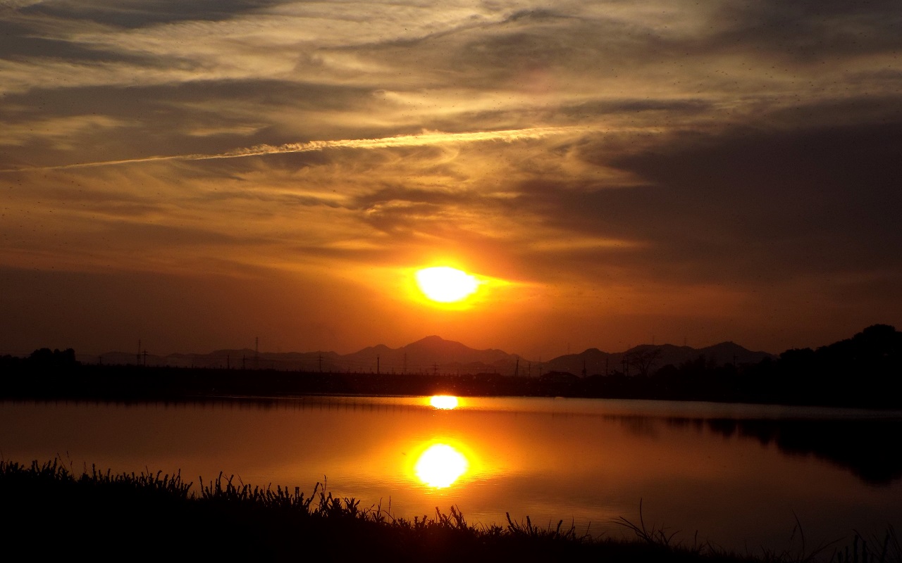 | 朝日と野鳥 | 夕日と野鳥 | ||