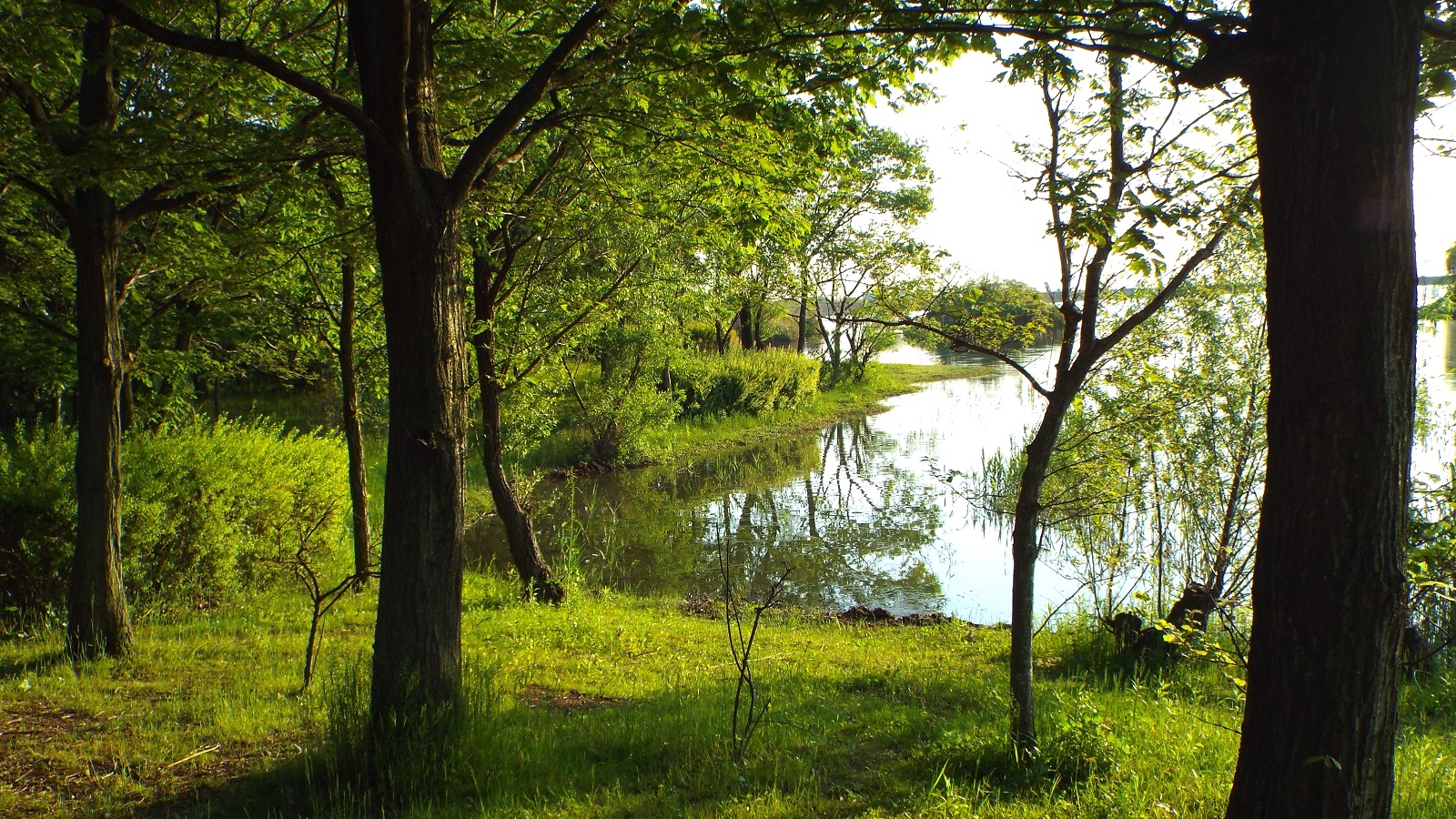 | 朝日とカルガモ | 朝日とカルガモ | ||